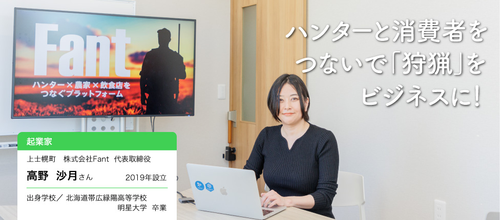 2019年:株式会社Fantを設立。狩猟業界のDX化を目指し、Webプラットフォーム「Fant」を開発・運営。